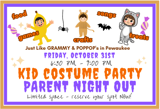 Click here to reserve your spot for Pewaukee’s Ultimate Parent Night Out & Kid Costume Party!