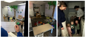 In one of our infant rooms, the teachers gathered the awake babies and took them the furthest corner unseen from the door.